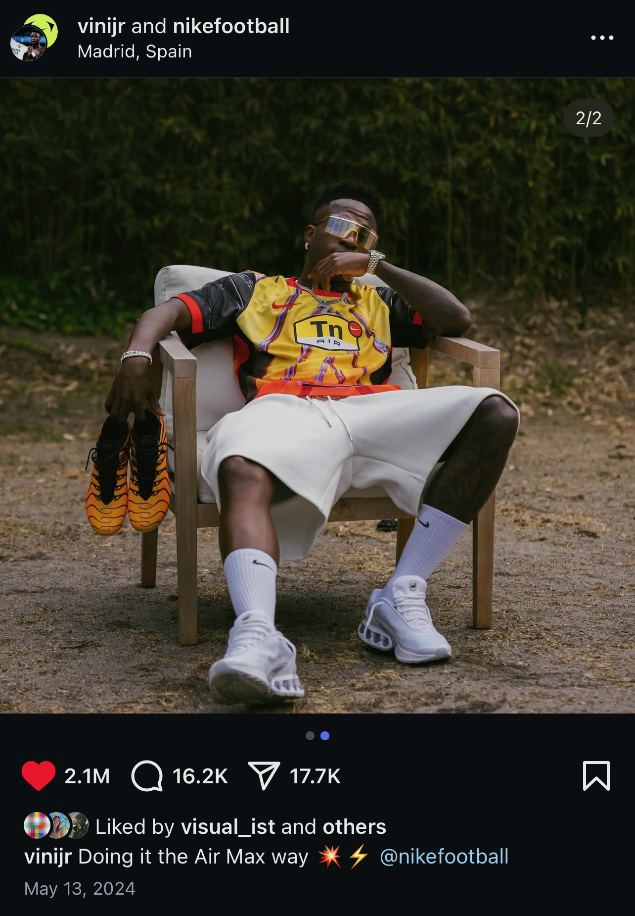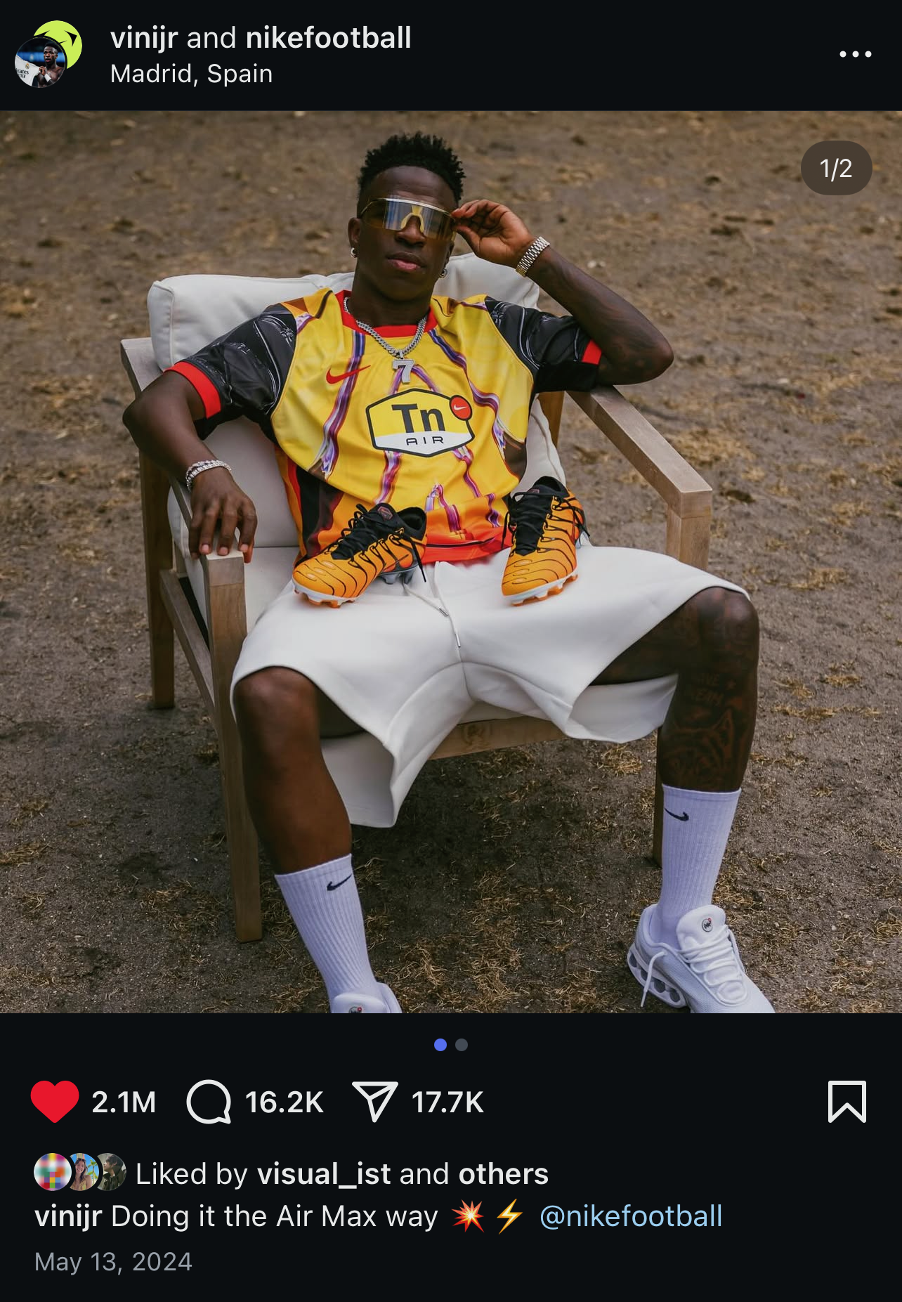 introducing the Nike Air Max Tn Jersey—a virtual-first design that couldn’t be confined to the digital pitch…modeled BY Vinícius Júnior.
